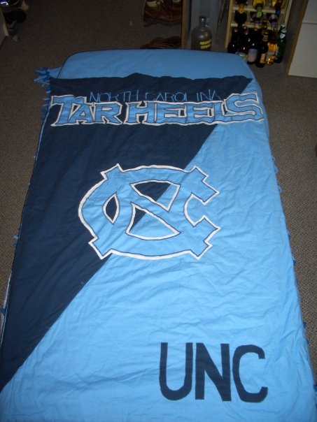 I must say, I was pretty impressed with the final product. There were SO many elements in this blanket that I had never used before. I appliqued the NC logo, “Tarheels” and UNC letters; a pretty big project in itself! I free hand stitched the “North Carolina” at the top of the blanket. Another large task to take on! I couldn’t have done it without my grandmothers help, and to her I’m eternally grateful. She was an amazing sewer who taught me everything I know! I don’t know if my Ex still uses this blanket but I sure hope he appreciates the work and thought that went into it!