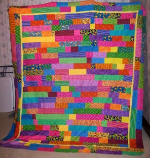 The staggered pattern of the strip is where it get the name Lasagna Quilt. This quilt is so east because there isn’t really a wrong way to make it. As long as your rows of strips are the same width you can sew them in any way that suits you. I would definitely suggest it for someone looking to make their first or second quilt.