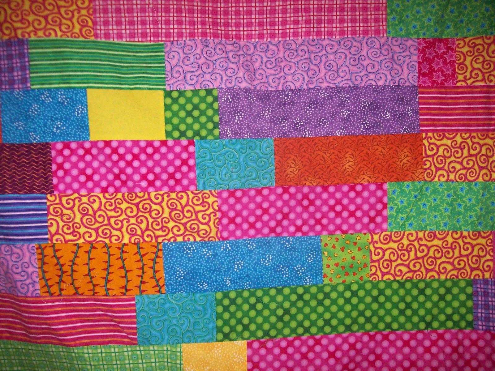 While I was in college I didn’t really have the space or the resources to keep quilting the projects I had started in high school. One such project was a Lasagna Quilt I started my Senior year of high school. While at a retreat one weekend I found these flannel fabrics that were the brightest things I’d ever seen. The colors and patterns were so fun and vibrant that I knew I HAD to do something with them! Now, prior to this, I had started a flannel quilt that was a lot of work and I couldn’t keep myself motivated to finish it. If the words, “Flying Geese” mean anything to you, you know what I mean. It’s a beautiful pattern but it’s very high maintenance and I just couldn’t finish it. So, my grandma suggested I make something a little simpler so that it was a little more realistic for me to finish. (such a smart lady!) That year at the retreat they showed us a demo of a Lasagna Quilt. It looked pretty straight forward so my grandma suggested I make one.