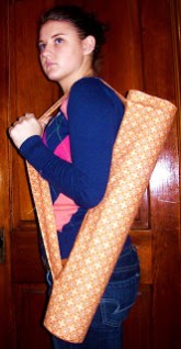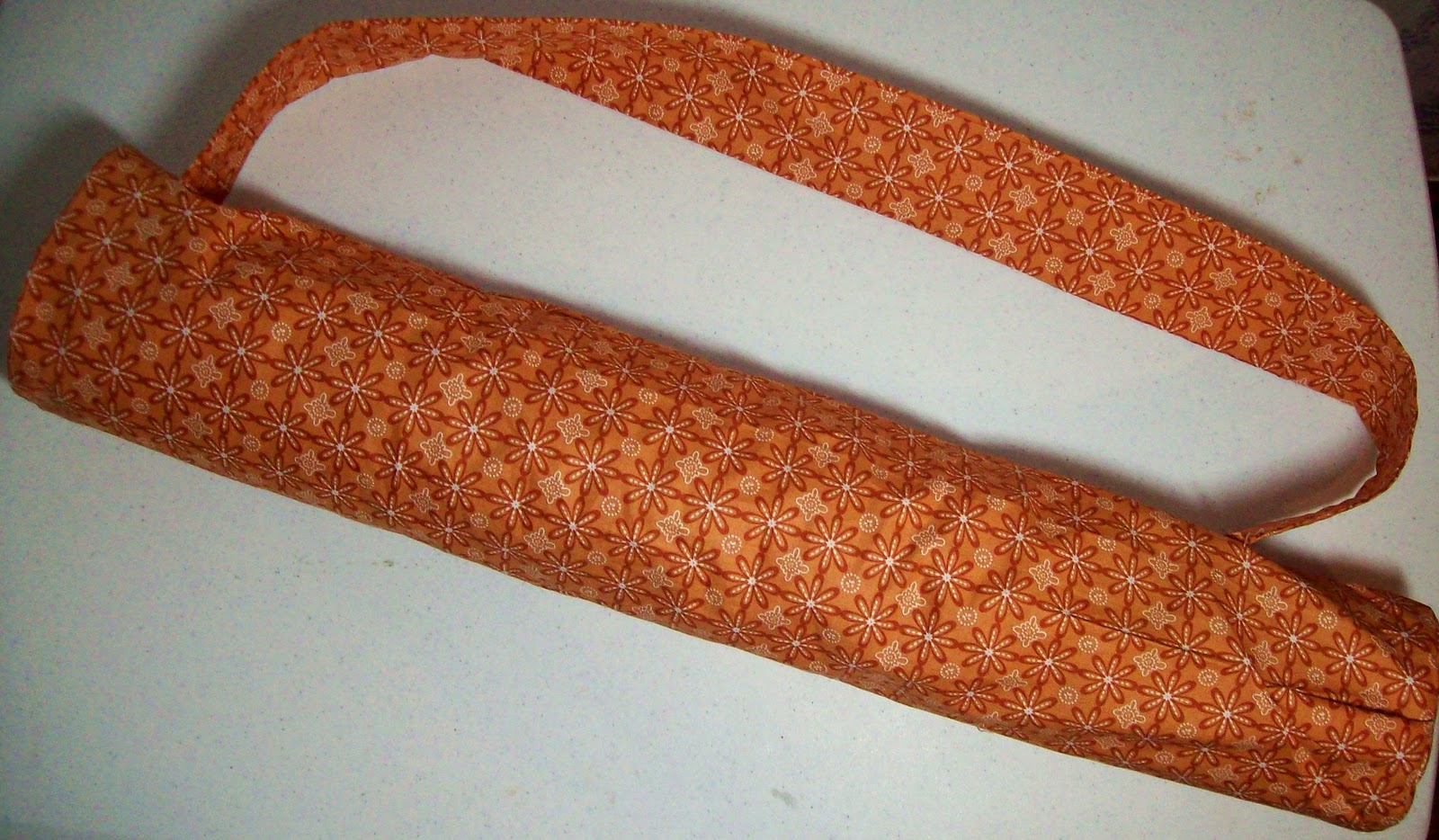 The other day I bought a new yoga mat (my mother has buried mine in the garage with the rest of my belongings). I like this new one more than the old one and as I was sewing a Christmas gift I had some extra fabric. I looked at my Yoga mat and then back at the fabric. A light bulb moment. I really like this particular fabric and was hoping there would be extras to use for something. Eureka! A Yoga Mat Bag! I measured my mat and measured the fabric I had left, it was the perfect amount! Now, I’ve never seen a pattern for yoga bag, let alone had one handy, so I just kinda made one up and hoped for the best. This was the result: