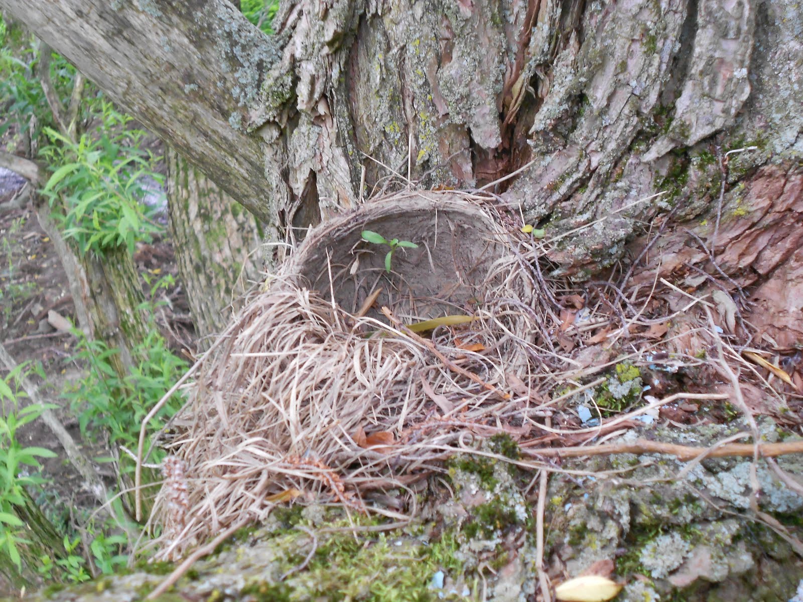 | an empty next sitting in one of the branches |