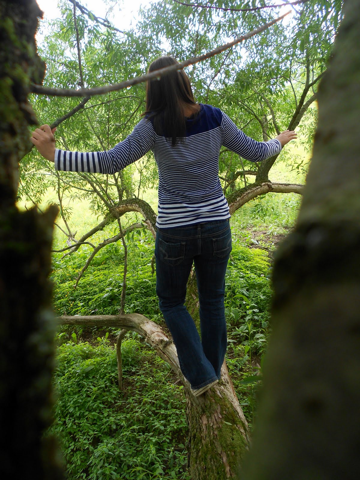 Last week the little boy I nanny took me to his tree house. The tree itself was more like 7 different trees all coming from one root system in the ground, which left a flat space in the center. The perfect place for a 5 year old to climb around without ever being too high.