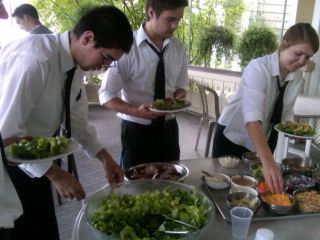 And somehow I managed to get only 2 pictures from the weekend. On Sunday we didn’t get much of a break for lunch/dinner, so we whipped up a huge salad bar for everyone to enjoy. The girls set up the salad options while the guys set the table on the porch for us all.