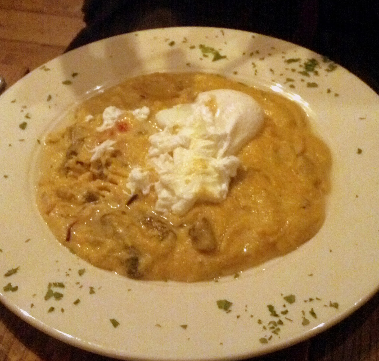 My roommate ordered the Polenta d’Amore: Poached eggs served on soft polenta with sauteed peppers, onions, and Italian sausage.